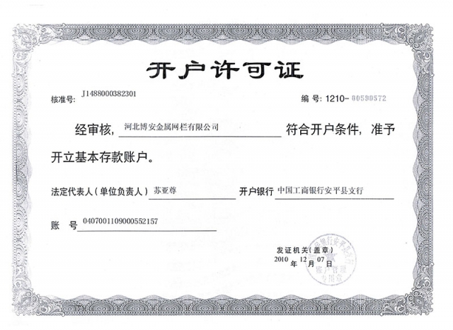 戶(hù)名:河北博安金屬網(wǎng)欄有限公司